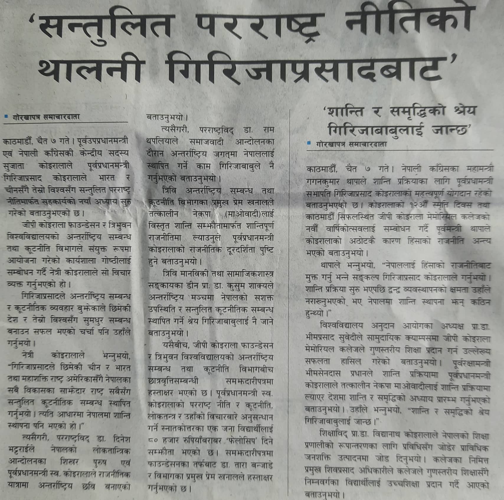the argument of balanced diplomatic relations with the working papers they presented titled Foreign Policy and GP Koirala and GP Koirala, a dynamic leader respectively.