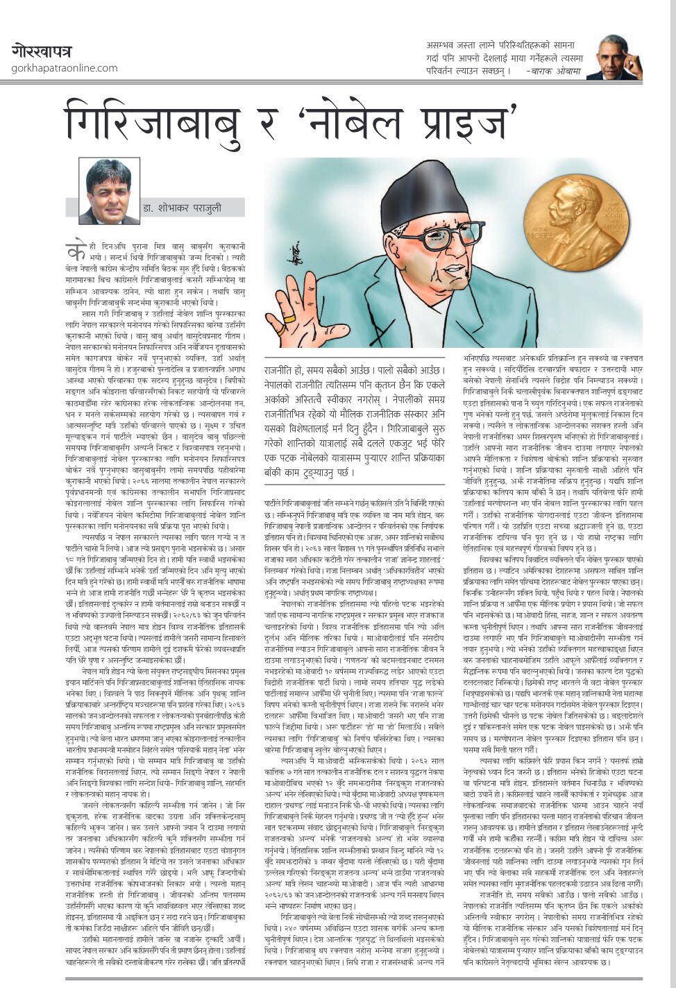 गिरिजाप्रसाद कोइरालाको १०२औँ जन्मजयन्तीबारे विभिन्न सञ्चारमाध्यममा प्रकाशित विश्लेषण र श्रद्धाञ्जलीहरू — हेर्नुहोस् प्रमुख समाचार लिंकहरू।News / By GPK Center https://gorkhapatraonline.com/news/162219 https://myrepublica.nagariknetwork.com/news/gp-was-heartened-by-tagores-verse-ekla-cholo-re-92-79.html