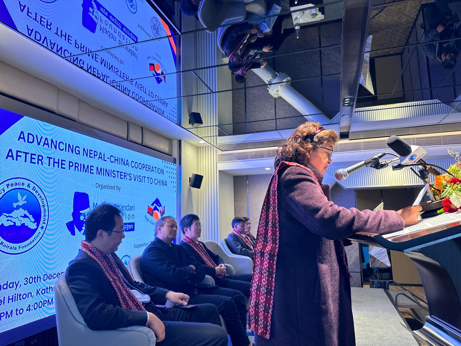 Sujata Koirala, a prominent Nepali political figure, participated in a significant forum titled “Advancing Nepal-China Cooperation Ahead of the Prime Minister’s Visit to China,” organized by the China-Nepal Friendship Forum in collaboration with the Madan Bhandari Foundation.